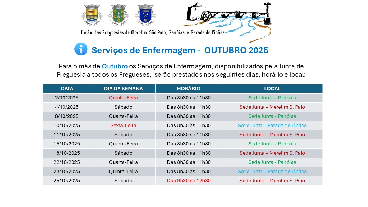 Estamos para servir a população de Merelim S. Paio, Panoias e Parada de Tibães, e contamos convosco para o cumprimento.